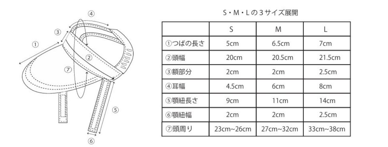 XS顔まわり19cm〜22cm、つば4cm